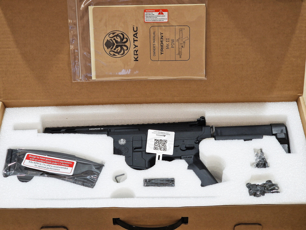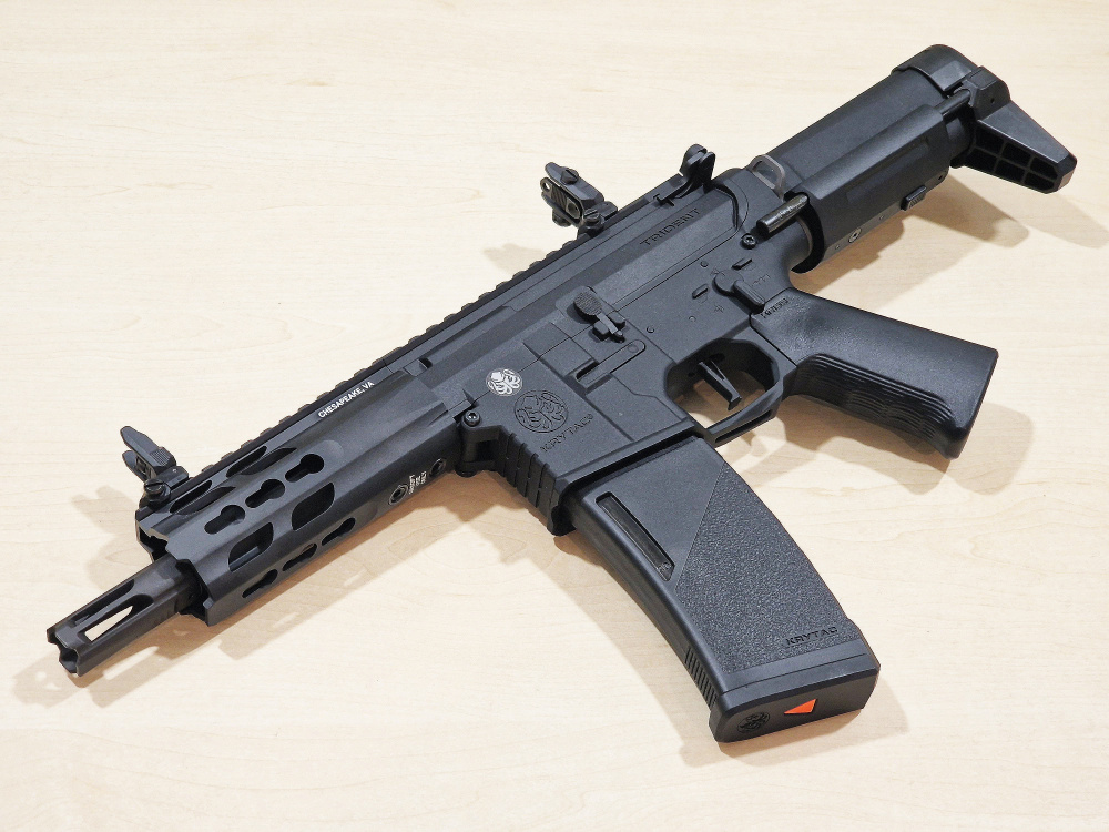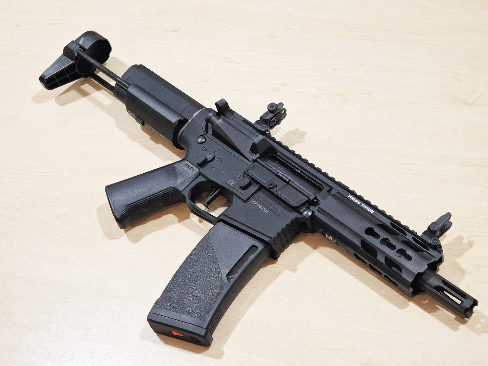 KRYTAC's PDW type electric gun with a 5.5-inch short barrel and compact carbine stock.