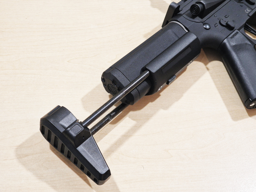It is designed based on ARs such as M4 and M16, and can be fired with the same operations as those of them, such as the selector lever and magazine catch.