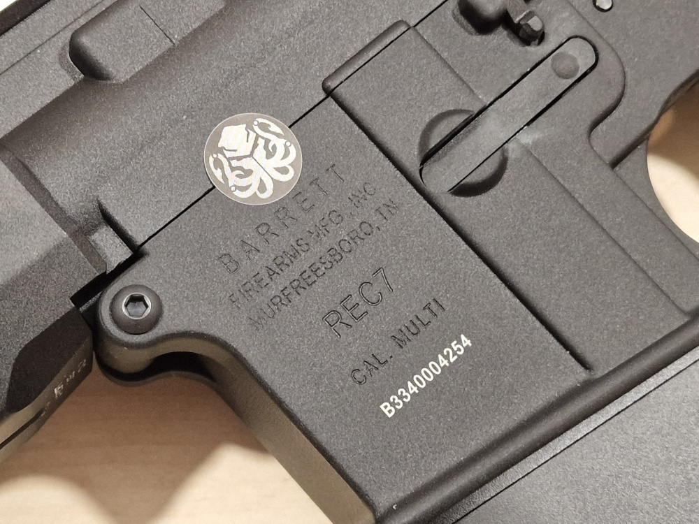 ●The handguard is an aluminum M-LOK specification with Barrett official license stamp and American flag stamp.