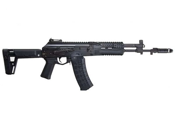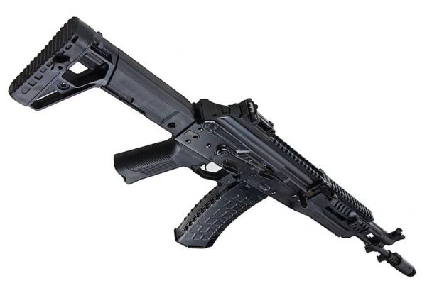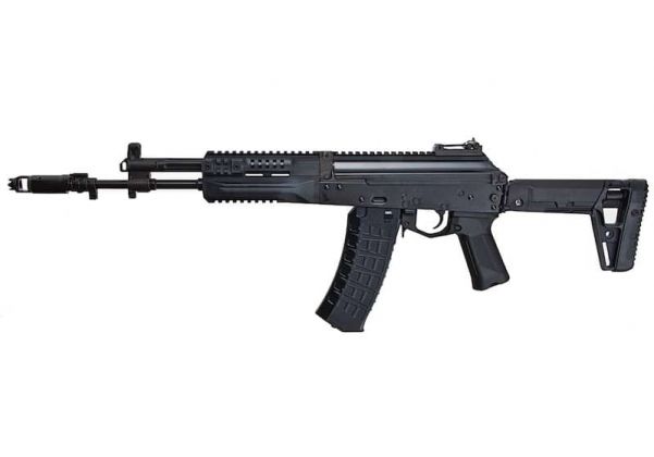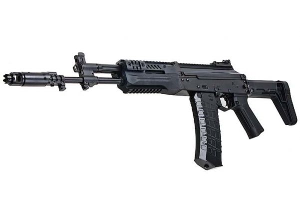 The LCT AK19 is a faithful reproduction of the AK19. The gun features modern upgrades to the otherwise traditional AK. Some of the notable facelift features include an adjustable folding stock, an ergonomic pistol grip, a monolithic style upper Picatinny rail, and an updated, aggressive-looking muzzle break, all of which give the LCT AK19 a fresh yet familiar look. The gun comes with a polymer magazine and being modeled after the 5.45x39 mag, it can work with other standard M4 style magazine pouches (pouches with kydex inserts may not fit).