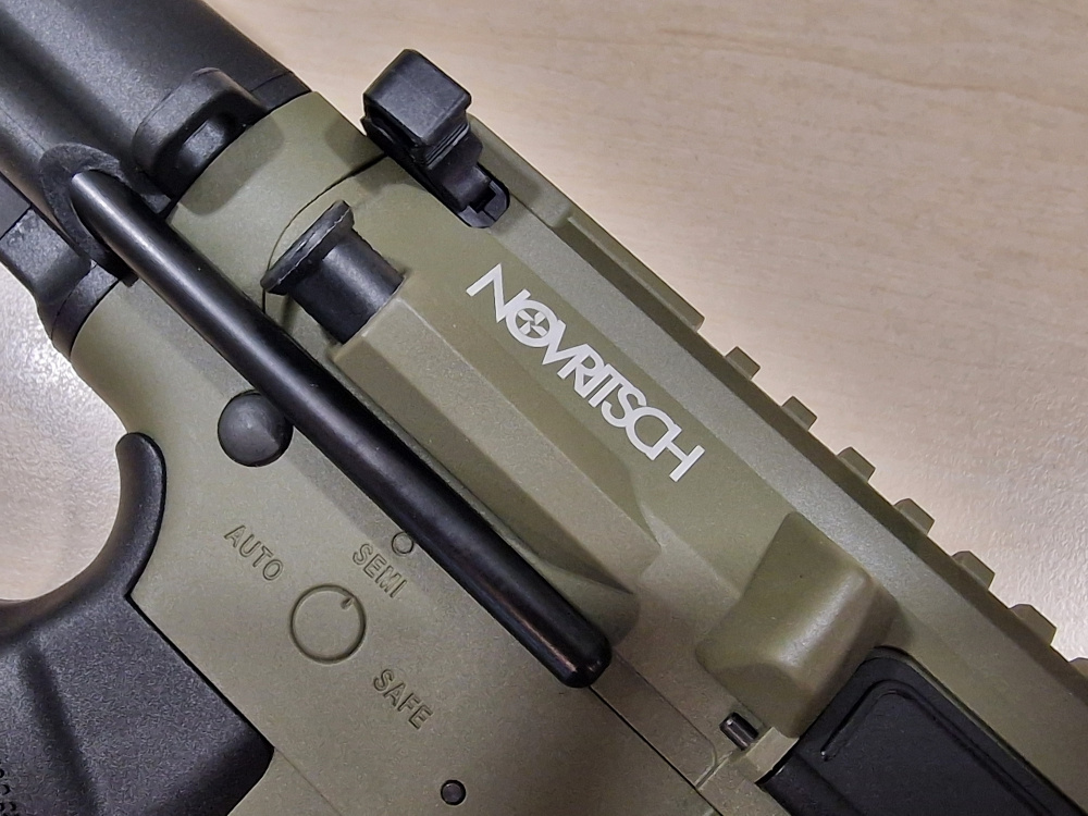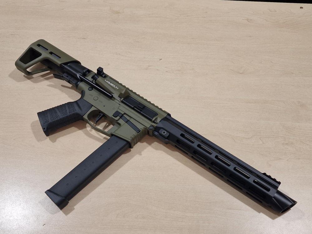 - Полимерный корпус с верхней планкой Picatinny для аксессуаров и CNC-алюминиевой рукоятью с прорезями.