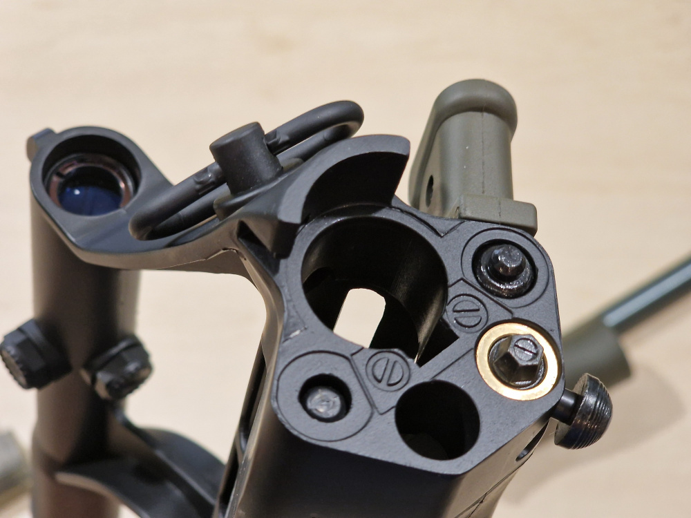 - • Усиленная передняя рукоятка на стальной основе и стальные антабки.