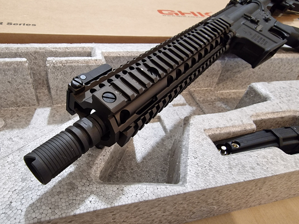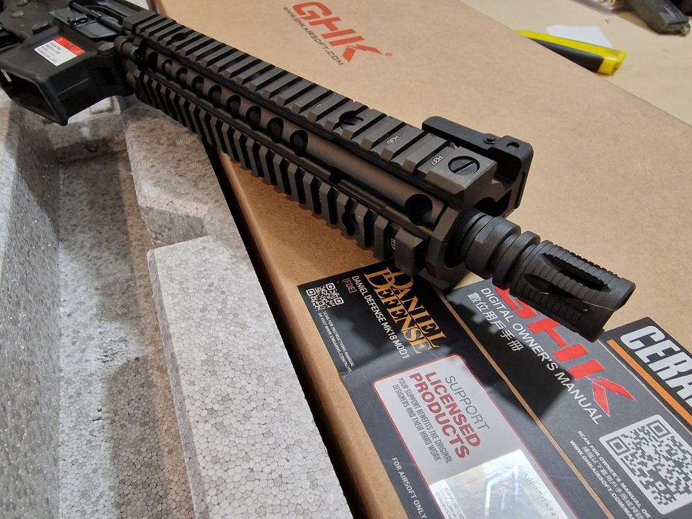 The GHK MK18 MOD1 GBBR is a faithful replication of the same model fielded by the many special operators. The gun is a fully licensed product so you will get authentic markings. The gas system is superb and the felt recoil is extremely satisfying. GHK has always done exceptional work in regards to their gas system and quality of their gun and this one is no exception. The over all lighter weight when compared with other models on the market makes this gun a great shooter and lighter magazines make it much easier to carry multiple at once.