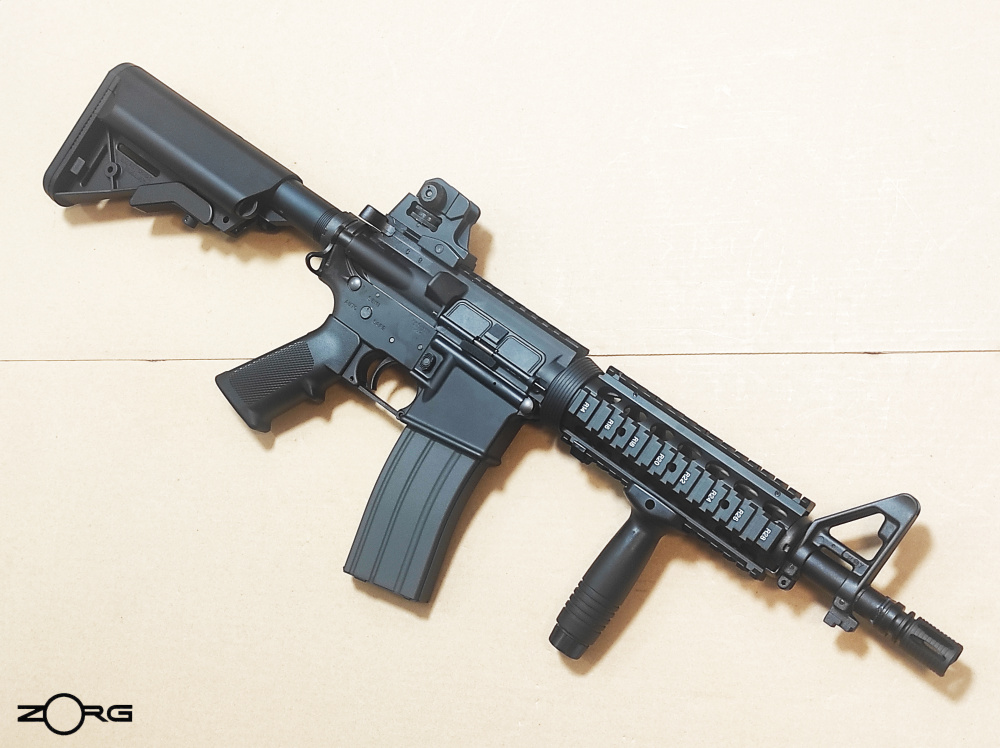 The RAS (Rail Adapter System) type handguard is equipped with 4 standard Picatinny rails (20mm), which allows the installation of accessories such as tactical lamps, vertical handles, PEQ, Laser etc. ..The internal plates in the handguard are present.