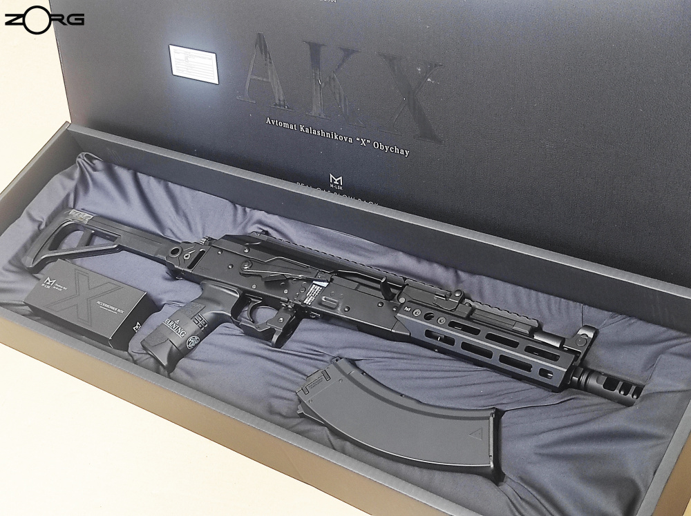 Корпус AKX, магазин (количество патронов 35), планка M-LOK (S/M/L), защитный колпачок, инструмент для регулировки передней части, руководство по эксплуатации, шестигранный ключ, зарядное устройство, шомпол, шомпол для чистки, шарики BB (0,2 г/100 патронов), прочее
