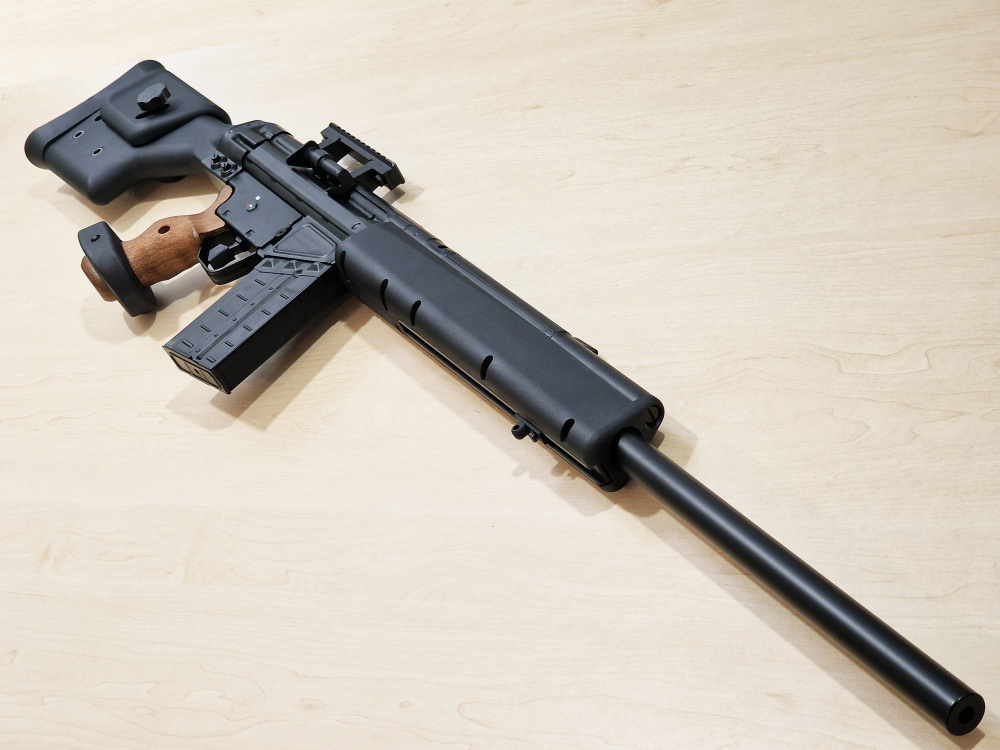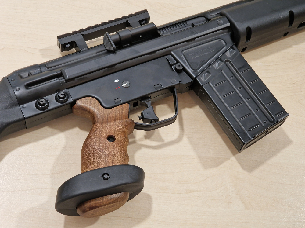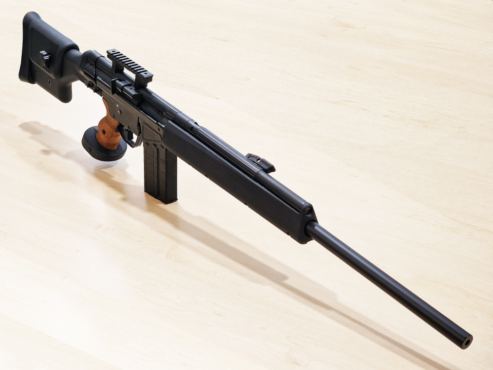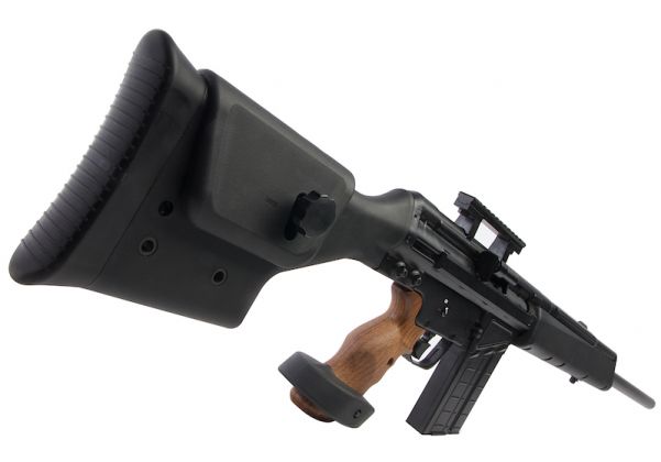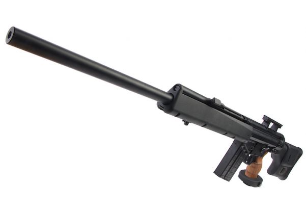 Страйкбольная версия от Umarex не только является полностью лицензированным продуктом, что означает, что она будет иметь те же размеры и маркировки, что и реальная винтовка, но это первая в мире винтовка с газовым blowback. Ресиверы выполнены из штампованной стали, что имитирует тот же процесс, что и на реальном огнестрельном оружии. Передняя накладка и приклад изготовлены из высококачественного пластика и на первый взгляд не отличаются от тех, что используются на реальной PSG-1. Рукоятка выполнена из очень реалистичного искусственного дерева и невероятно хорошо обработана, с регулируемой площадкой для ладони, а приклад винтовки включает в себя регулируемую щеку для достижения наилучшей стрелковой позиции. Как и у реальной PSG-1, здесь нет открытых прицелов, но имеется планка пикатинни для установки Вашего желаемого прицела, также совместима с Tokyo Marui.