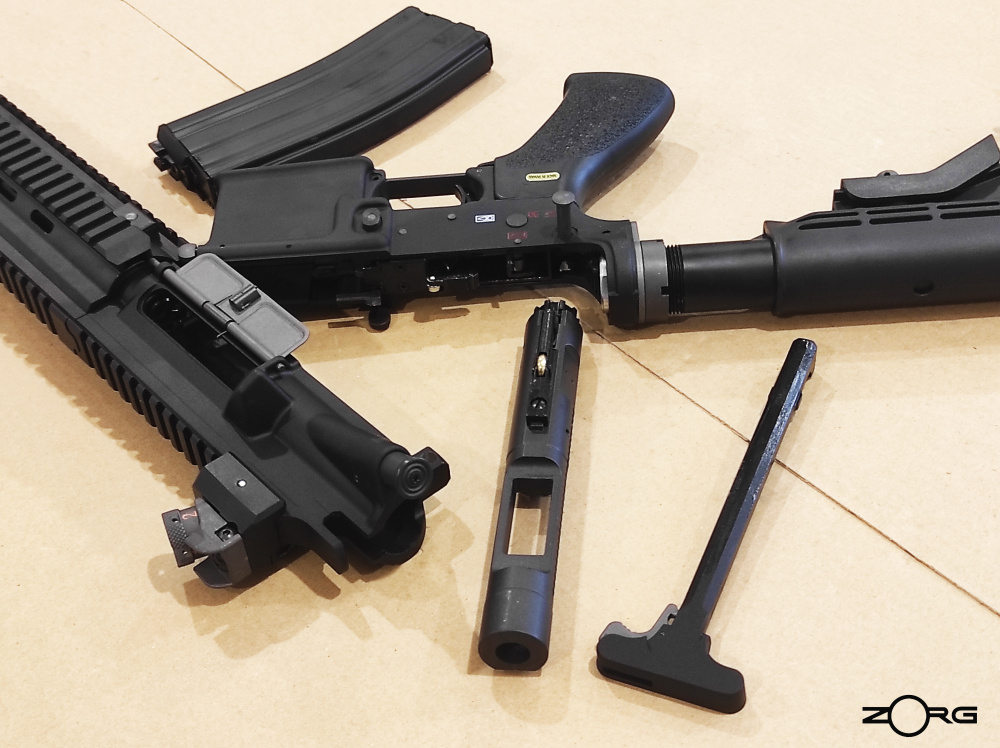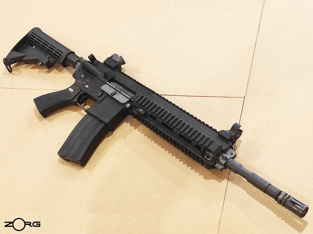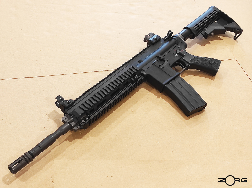 Газобаллонная винтовка HK416 в масштабе 1:1 с системой открытого затвора. Высокая производительность и реалистичная работа механизма.