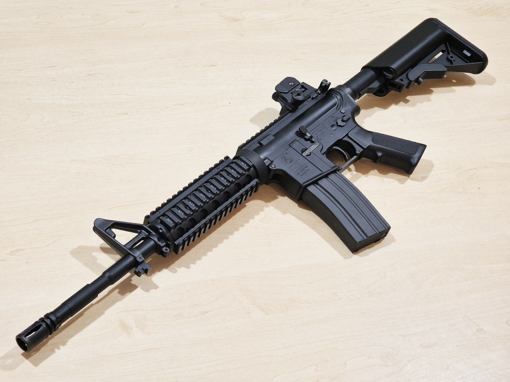 Employing the new SHOOT & RECOIL Engine Version 2, this new M4 is a blast to shoot with both sound and visual gratification to boot. The gun comes with a standard Tokyo Marui 82 round magazine but it can be set to work in 30rd mode for realism and to force reloads. The gun is of full aluminum (i.e. Full metal) construction with ABS stocks and grips for more realistic feel!