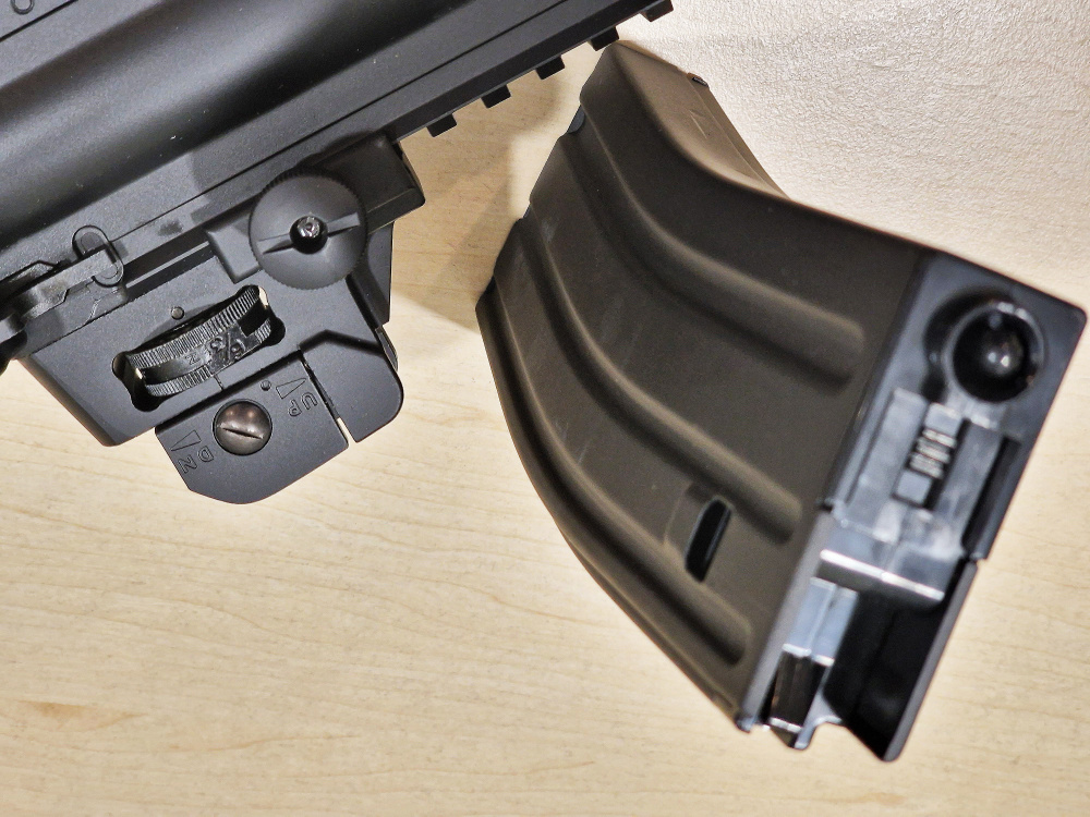 Shooting this gun is a LOT of fun. The blow back feature coupled together with the empty-magazine bolt-lock and release function, and the configurable 30 round magazine makes this a very realistic gun perfect even for law enforcement training purposes! But if you are a gamer and prefer a high capacity magazine, there is also the optional Tokyo Marui 430 round hi-cap magazine which can satisfy your needs (the bolt-lock feature is disabled when the hi-cap magazine is used). When the last BB is fired, the bolt lock release button pops outward for visual confirmation that the magazine is empty, and of course the trigger gives no response as well. If you hold the bolt lock release button down or remove the magazine, you can keep on firing (although no BBs will be fired). Bravo to Tokyo Marui for this new innovative gun, showing it continues to be the leader in Airsoft innovation.