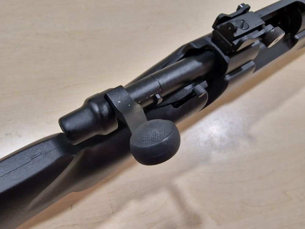 - Газовый механизм позволяет досылать патрон без полного отвода затвора