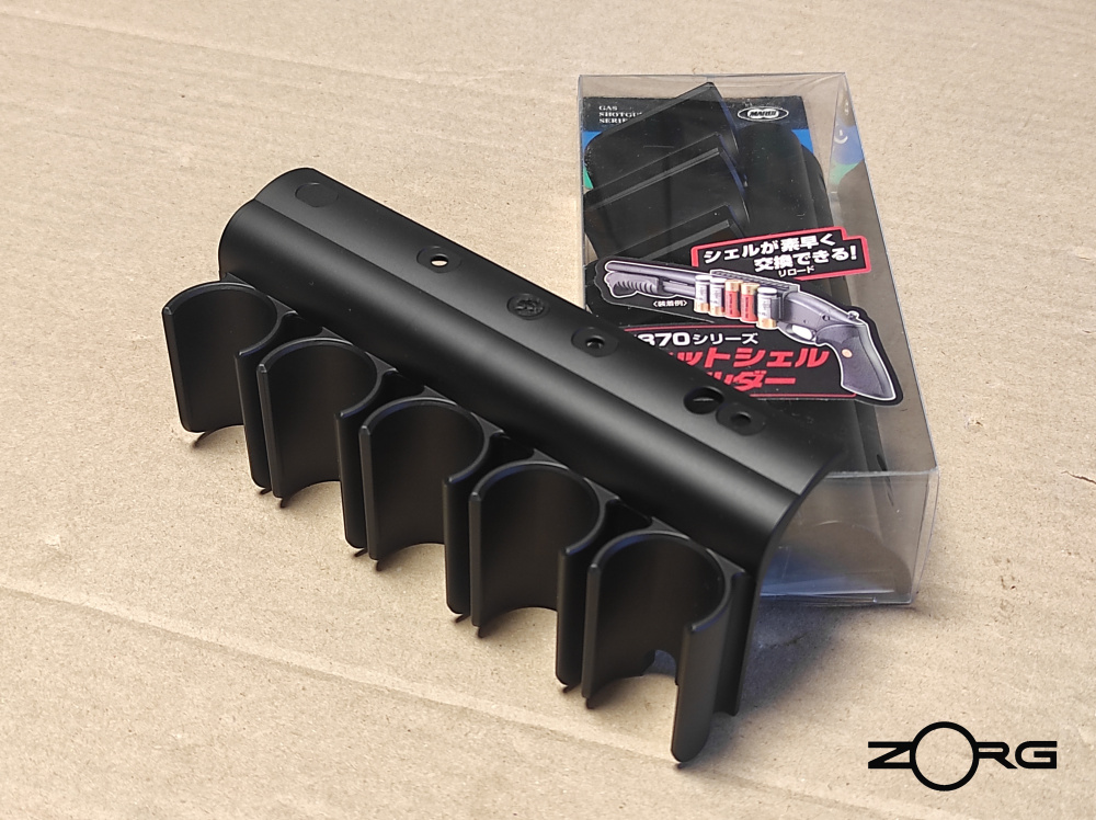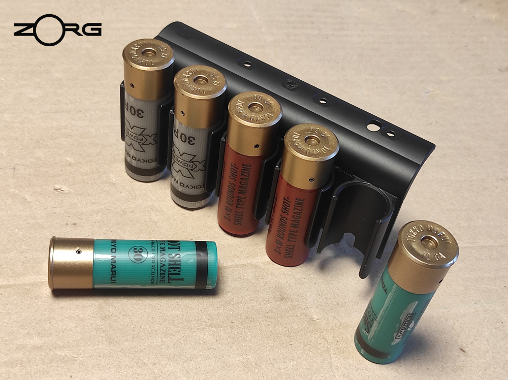 Designed to hold 5 shells, this attachment fits perfectly on the TM M870 Breacher as it fits tidally underneath the rail. The plastic holders are durable but flexible allowing for quick release of the shells.