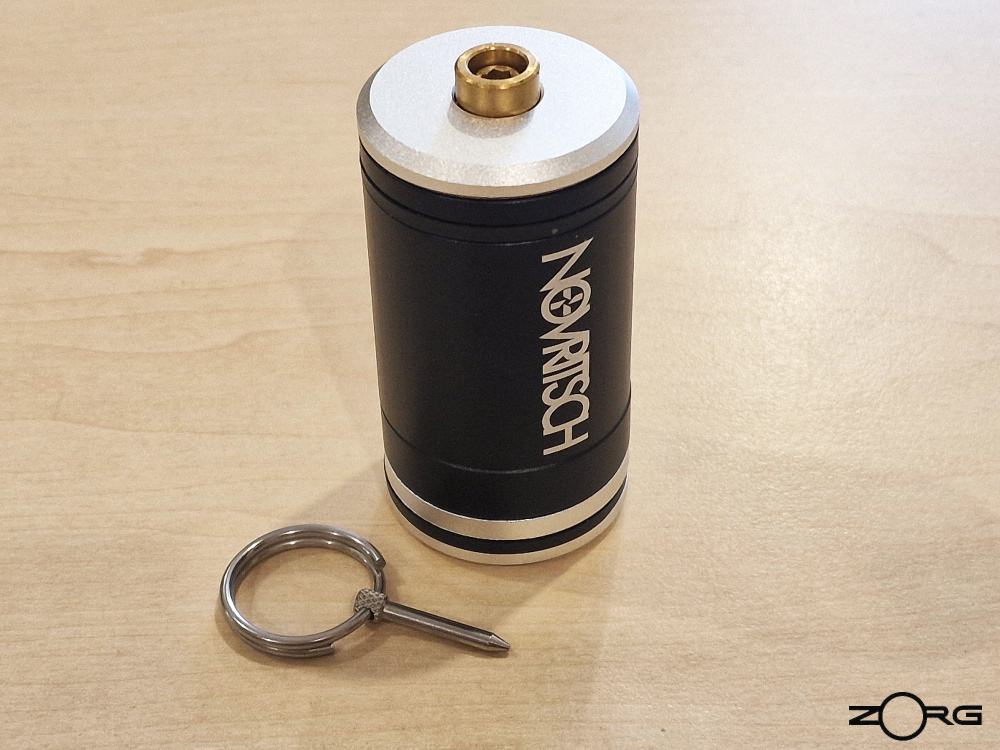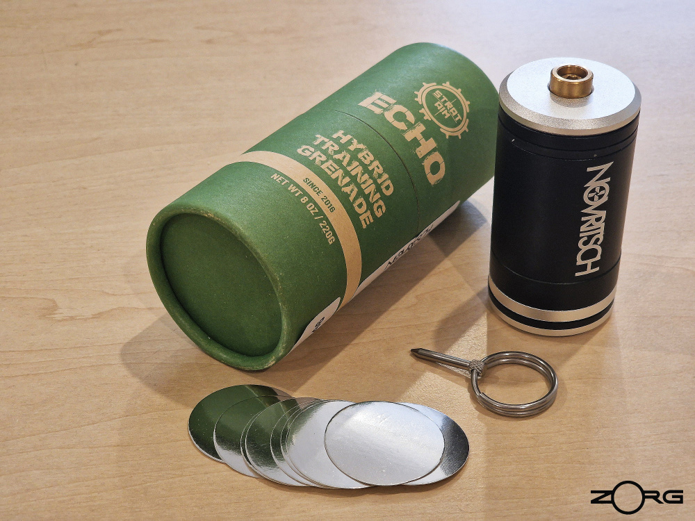 Гибридная газовая граната, использующая взрывные мембраны для производства звукового шума при броске. Активируется при ударе. И если Вы хотите, Вы так можете поместить пластмассовые шарики под мембрану.
