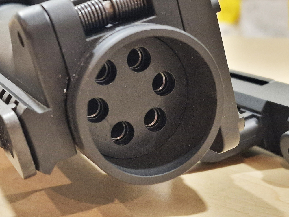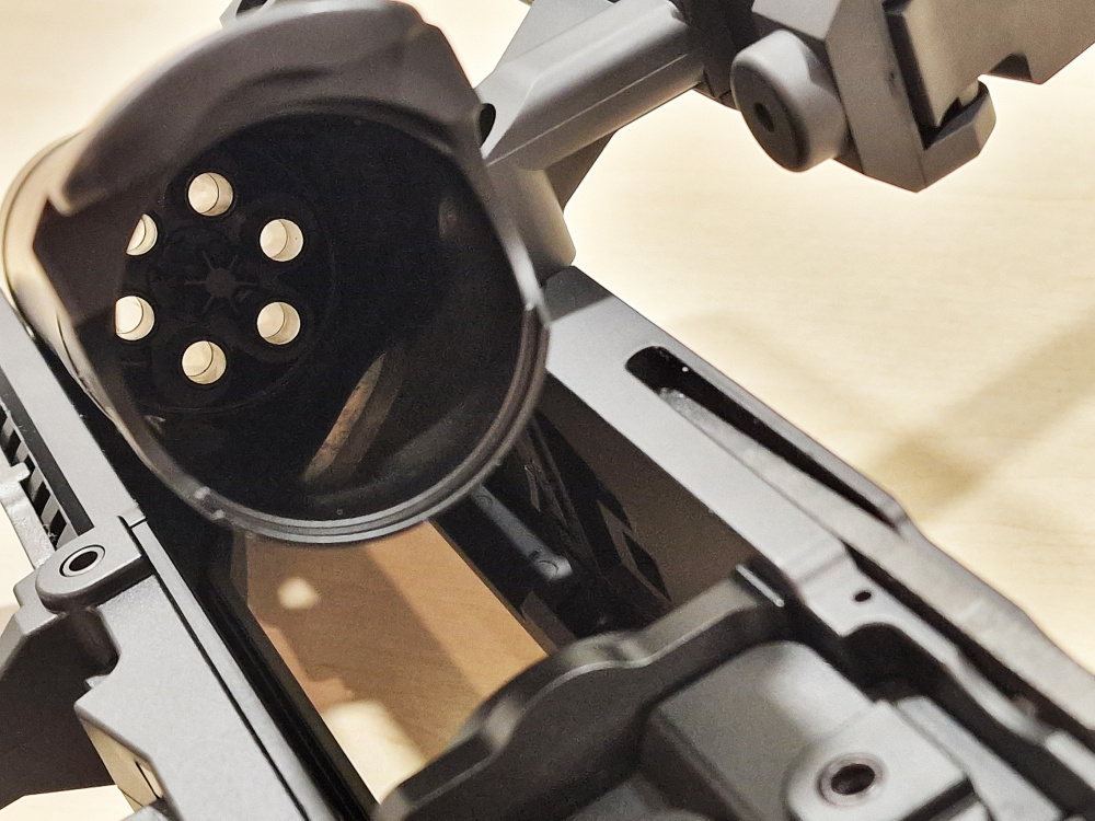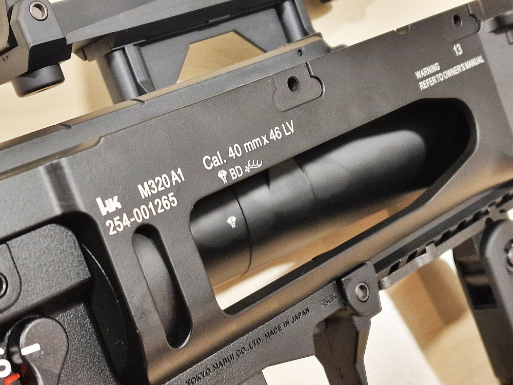 Tokyo Marui's amazing attempt on the M320A1 in an innovative way. Instead of charging the gas into the grenade itself, you charge the gas into the pistol grip of this launcher itself. This means that spare shells are much cheaper, making it more affordable to buy a lot of them. The Marui shells are lighter to carry too!