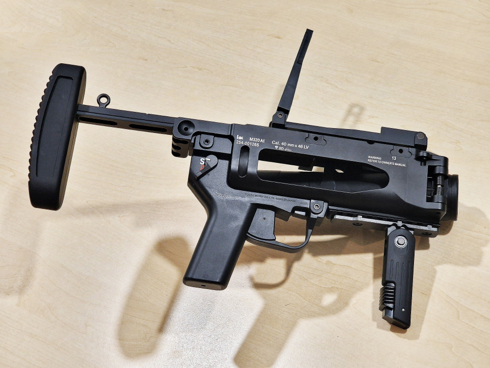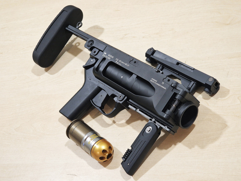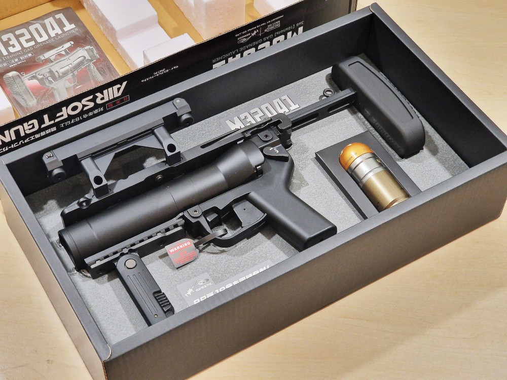 Tokyo Marui's amazing attempt on the M320A1. Iron Airsoft have also made one but Tokyo Marui have managed to make it a little different. Instead of charging the gas into the grenade itself, you can charge the gas into the pistol grip itself which is always very useful.