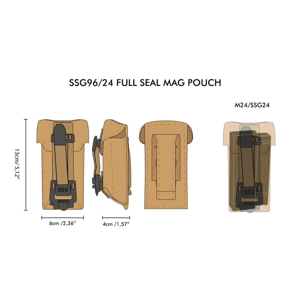 Герметичный подсумок для магазинов снайперских винтовок SSG96 и SSG24. Обеспечивает быструю и бесшумную перезарядку с полной защитой магазинов от дождя, грязи и пыли.