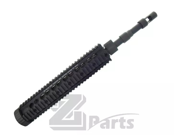 ♦ Includes: steel outer barrel, steel barrel nut, aluminum handguard, aluminum handguard nut, steel gas block, stainless gas tube, steel threaded muzzle kit and steel flash hider adapter