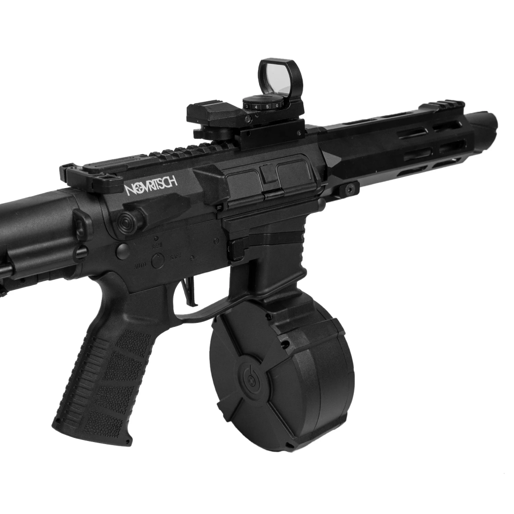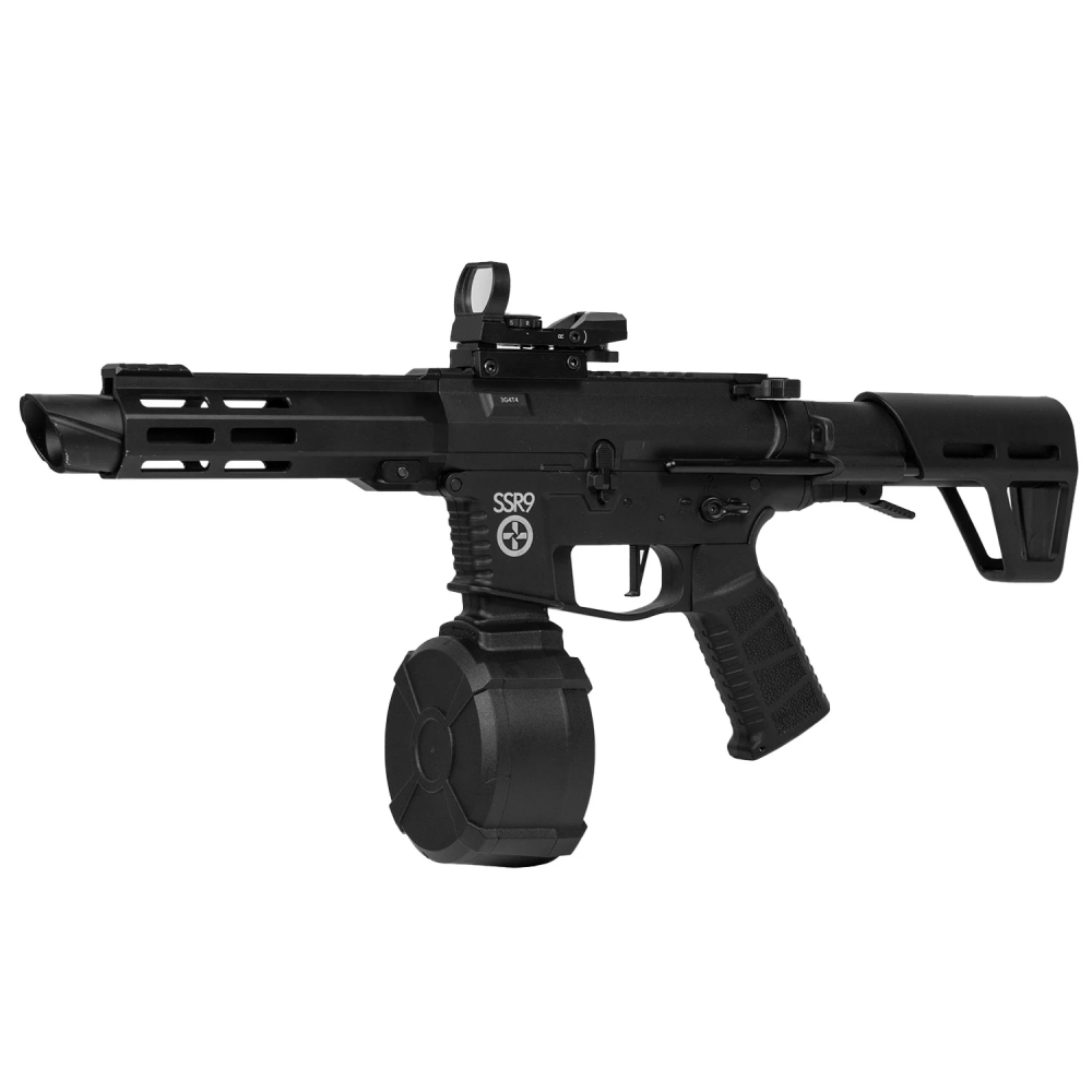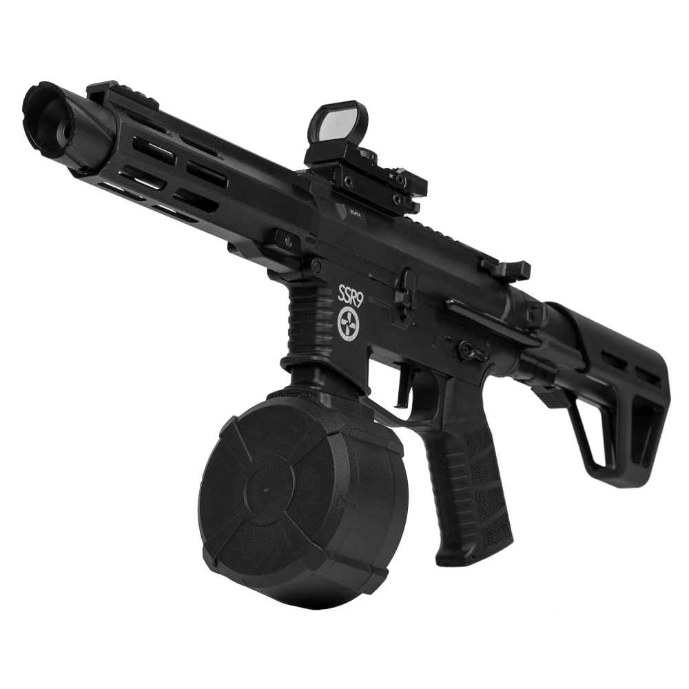 Компактный электрический магазин барабанного типа высокой емкости для страйкбольной винтовки SSR9. Позволяет вести непрерывную стрельбу без необходимости перезарядки.