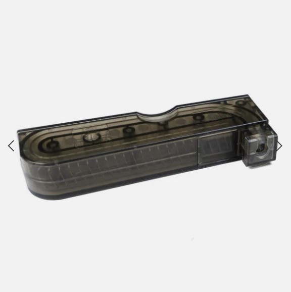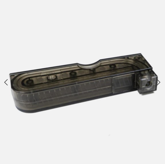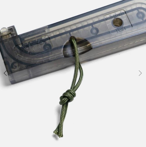 It includes an integrated BB tester so you can quickly check the BB size from your speedloader, preventing mistakes like loading 6mm BBs into your magazine. The magazine also has a small hole for an optional string, which can make it easier to pull out during use.