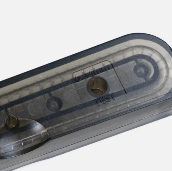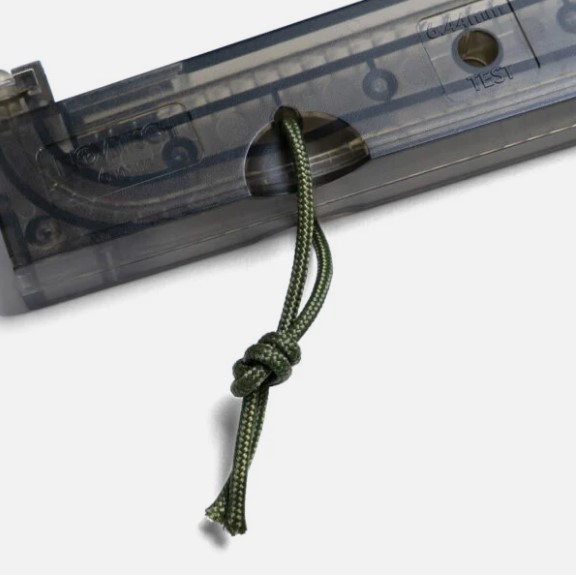 It includes an integrated BB tester so you can quickly check the BB size from your speedloader, preventing mistakes like loading 6.44mm BBs into your magazine. The magazine also has a small hole for an optional string, which can make it easier to pull out during use.