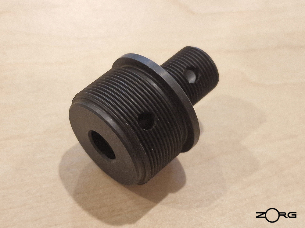 Фрезерованный переходник (CNC) с удлиненной резьбой для идеального выравнивания макета глушителя на винтовках SSG10 и SSG11. Преобразует резьбу 28 мм CCW в стандартную 14 мм CCW.