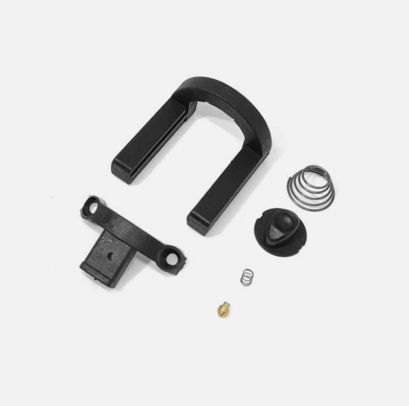 It includes a plastic slider, top and bottom, a spare adjuster with pin and BB stopper, and a spring.