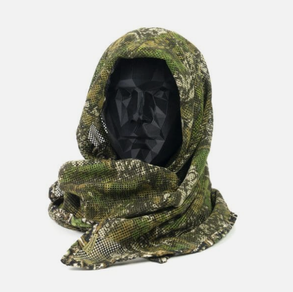 A camouflaged scarf with breathable material that you can use to wear around like a scarf, giving you a low profile figure.
