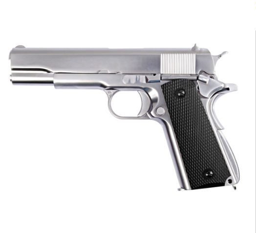 —WE 17042 WE-049-1911 , Silver , Full Metal Black Checker Grip , 6mm Gas Blow Back