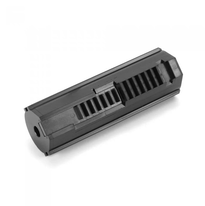 If the gear is rotated at a high speed using high cycle or high response settings, the timing at which the sector gear starts pulling the piston will be off, resulting in problems such as the piston teeth being scraped or the gear teeth breaking. In order to solve this problem, this product is a model with an optimized shape based on our "Hard Piston". The number of metal teeth, which carry the most stress, has been increased from 1 to 7 compared to a typical piston, making it possible to handle even when cutting sector gear teeth.