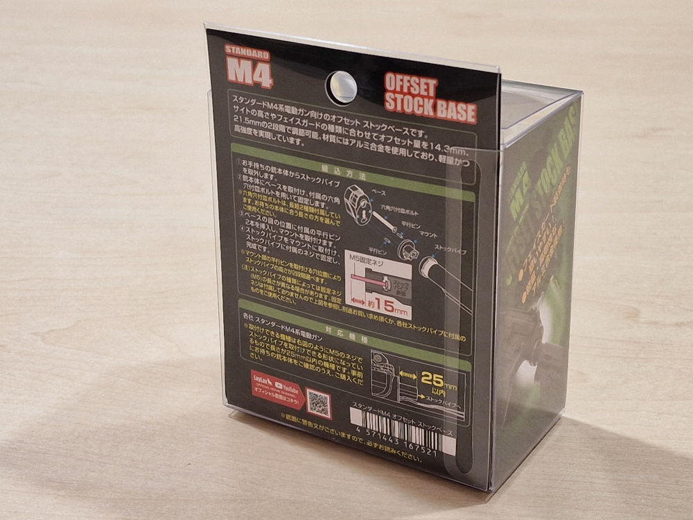 Make your M4 AEG more competitive with this lightweight offset stock base for easier aiming with your optics as well as a more comfortable cheek weld even with face guards and full face masks. The M4 offset stock base with two adjustable heights to match your optic height and face protection height. A set of parallel retaining pins can be adjusted upon installation at both 14.3mm and 21.5mm from the stock base. In addition to its lightweight and durable aluminum build, the top of the stock base is serrated with built in grooves for better grip.