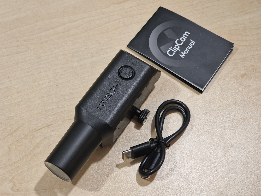 The ClipCam comes with a USB-C charging cable, a USB-C port cover, and, a user manual.