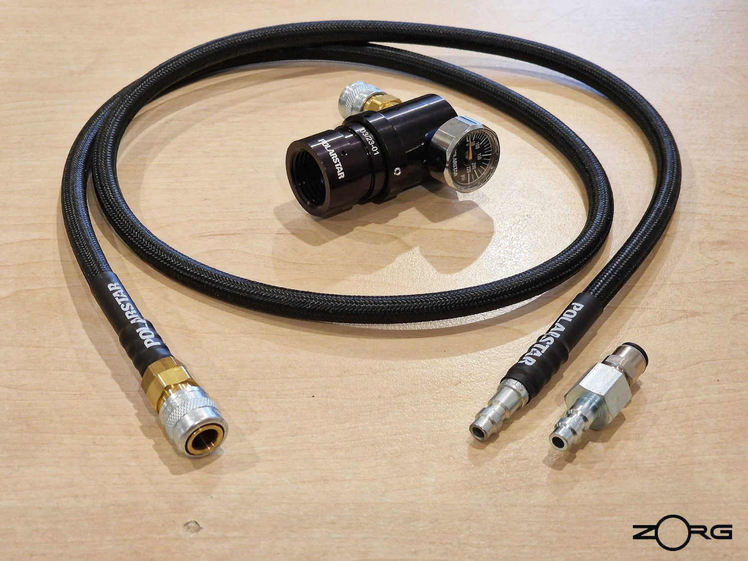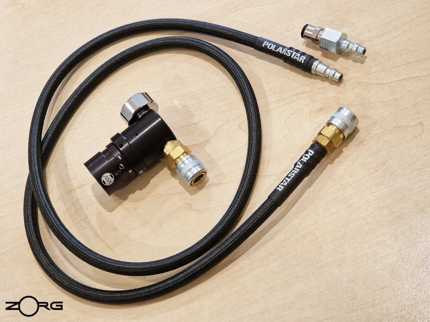 **Доступно в виде "воздушных установок" или отдельных "регуляторов". Воздушная установка включает в себя регулятор, воздушный шланг и сборку мужского QD-подключения, что является всем необходимым для подключения одного из наших двигателей HPA к баку HPA. Регулятор представляет собой только часть регулятора воздушной установки и требует отдельной покупки воздушного шланга и QD-подключения, если их у Вас еще нет.