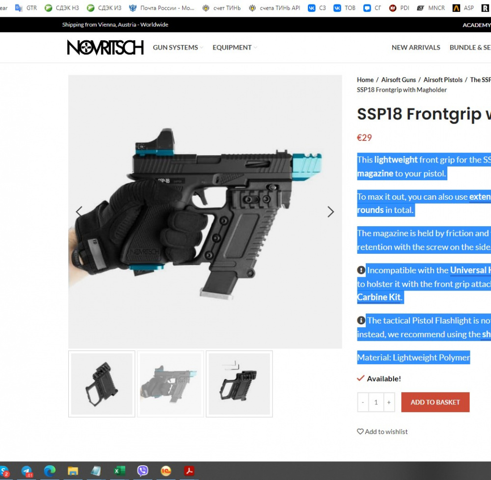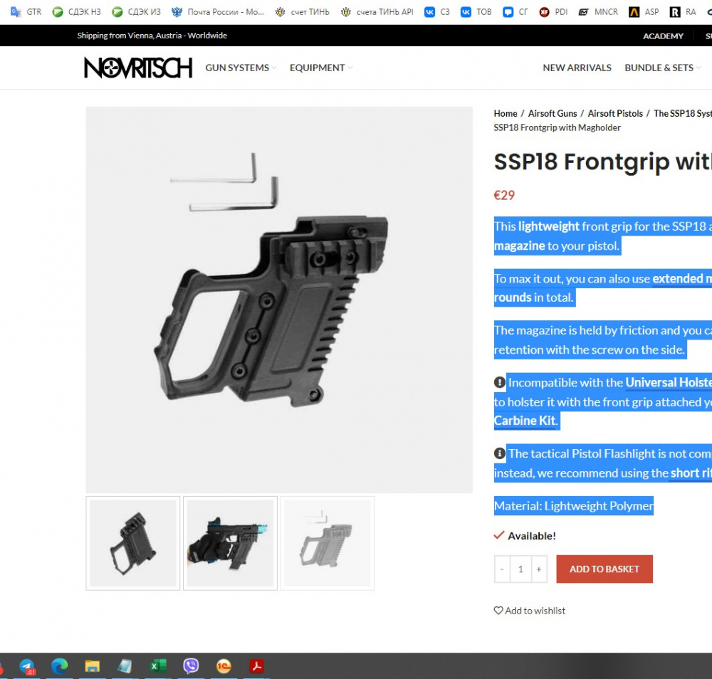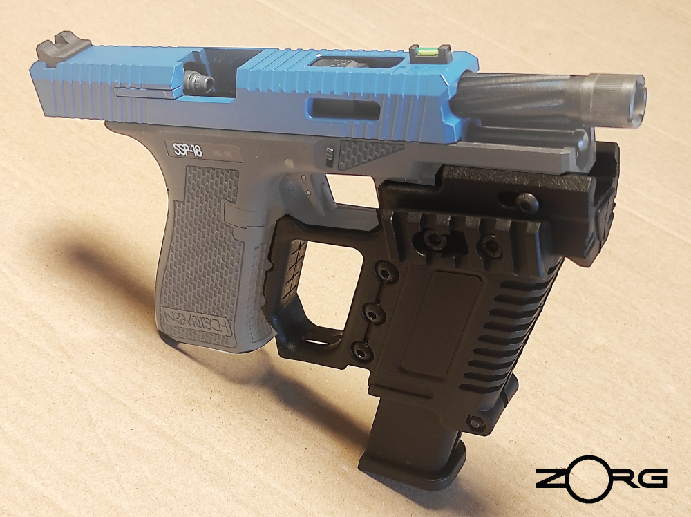 This lightweight front grip for the SSP18 allows you to add an extra magazine to your pistol.