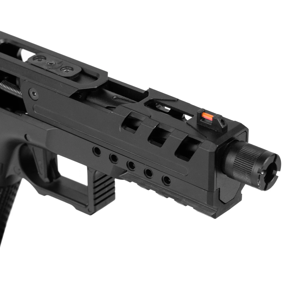 Запасная передняя часть затвора второго поколения для страйкбольного пистолета SSP28. Изготовлена методом фрезеровки на станке с ЧПУ из алюминиевого сплава с анодированным покрытием. Оснащена новым дизайном с вырезами.