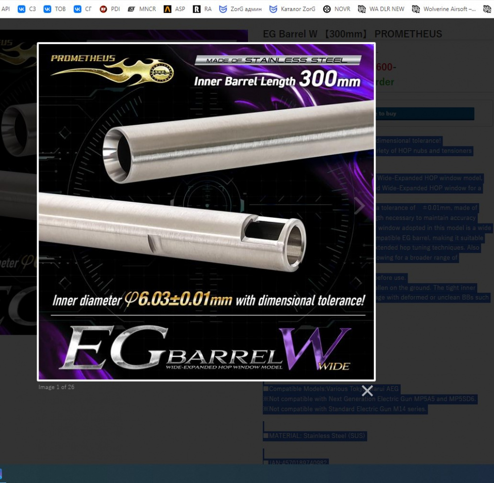 Inner barrel bore width of 6.03mm with a tolerance of ±0.01mm, made of stainless steel (SUS) for superior strength necessary to maintain accuracy without the need for coatings. The HOP window adopted in this model is a wide type similar to Prometheus KRYTAC-compatible EG barrel, making it suitable for setups involving R-HOP and other extended hop tuning techniques. Also compatible with other tuning setups, allowing for a broader range of customization options.