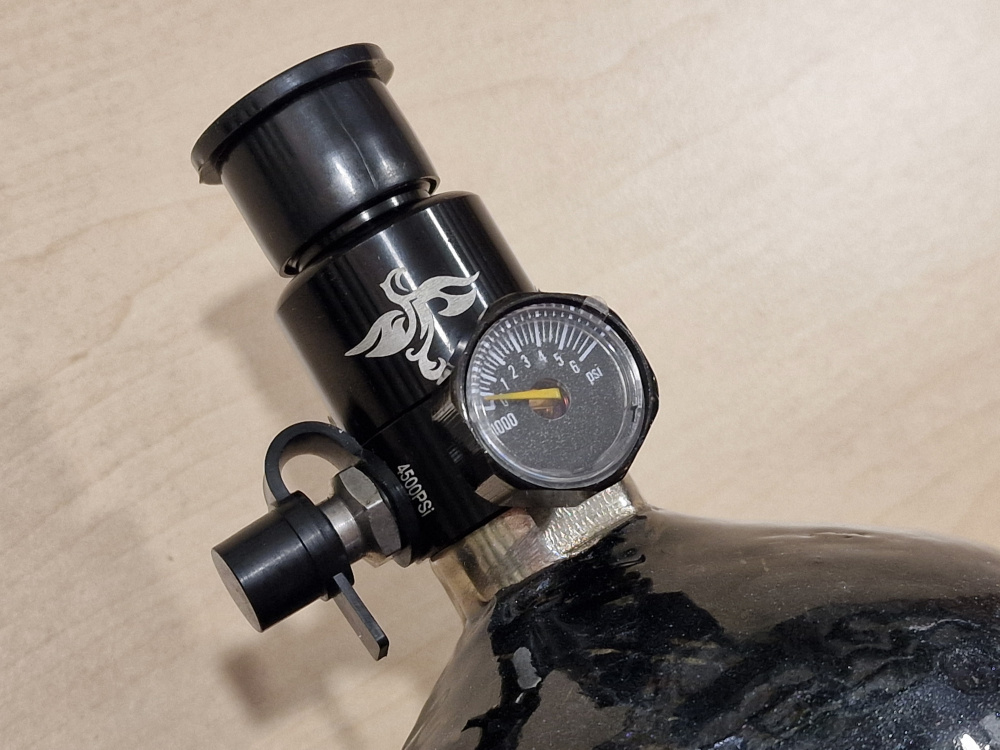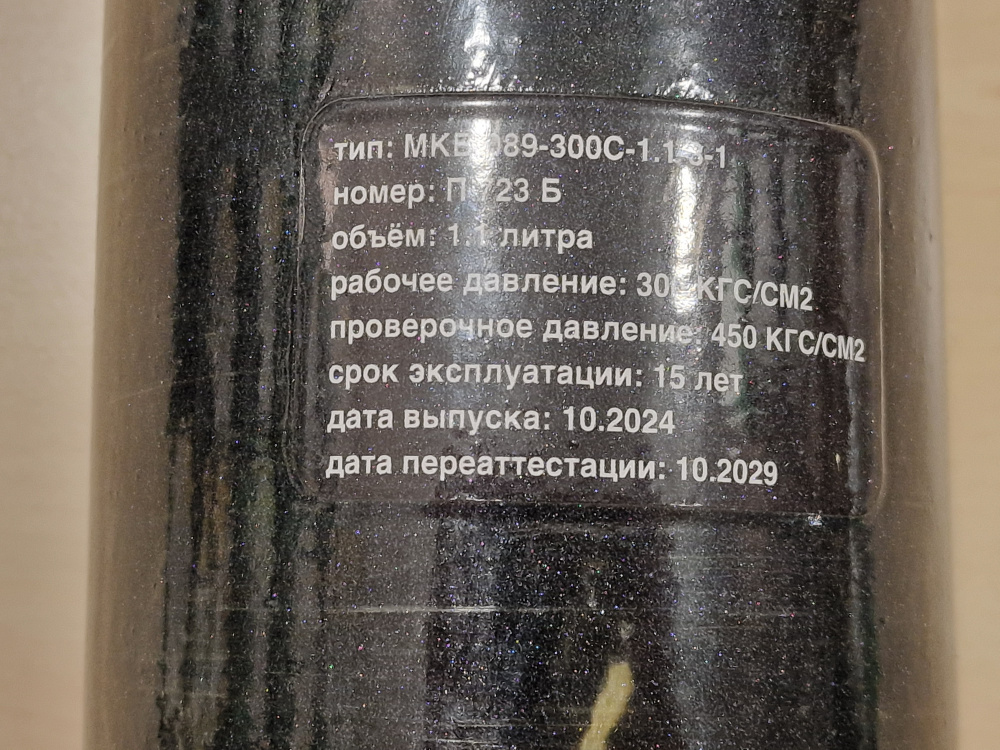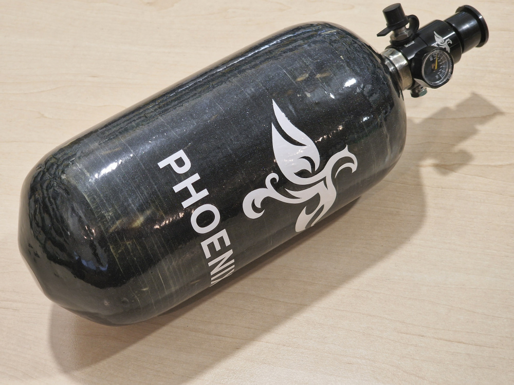 Phoenix баллон композитный 1.1 литра 4.500 psi (регулятор Compact) ТТХ изделия (без регулятора): Объем: 1,1 литр Длинна: 240 мм Диаметр: 110 мм Вес: 950 грамм Рабочее давление: 300 кгс/см2 Срок службы: 15 лет Межаттестационный срок: 5 лет