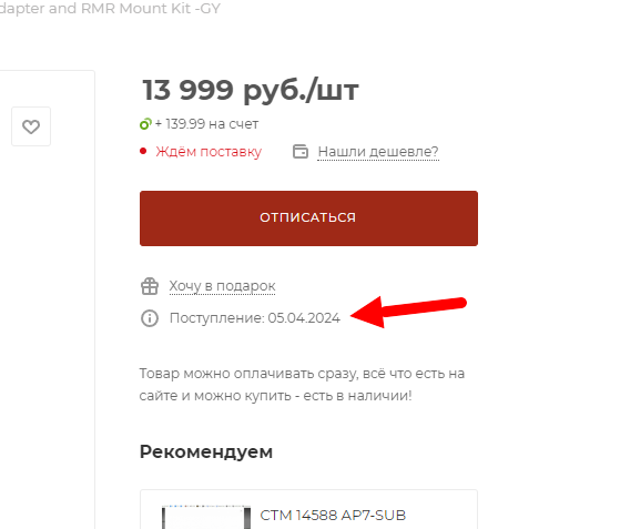 Товар показывает, что его нет на складе, когда он будет доступен?