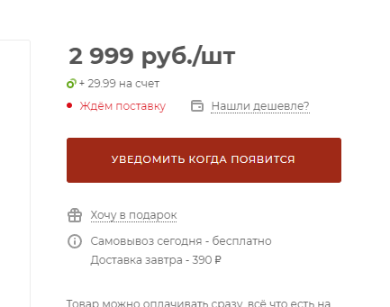 Важно! Если вы установили блокировщик всплывающих окон или аналогичное дополнение, вы можете не увидеть кнопку уведомления о наличии на складе.